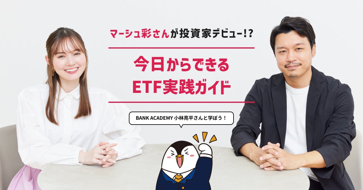 2024年より新しいNISA制度が始まり、資産形成に対する社会的な関心が高まっている中、マーシュ彩さんが当社の資産形成アンバサダーに就任、若年層を中心に資産形成の大切さを訴求する役割を務めていただいております。今回はその一環として、人気YouTubeチャンネル「BANK ACADEMY」を運営する小林亮平さんに投資のイロハを教えてもらいながら、投資未経験者のマーシュ彩さんが実際にETF(上場投資信託)投資に挑戦し、その投資結果も公開する連載企画をスタートします。