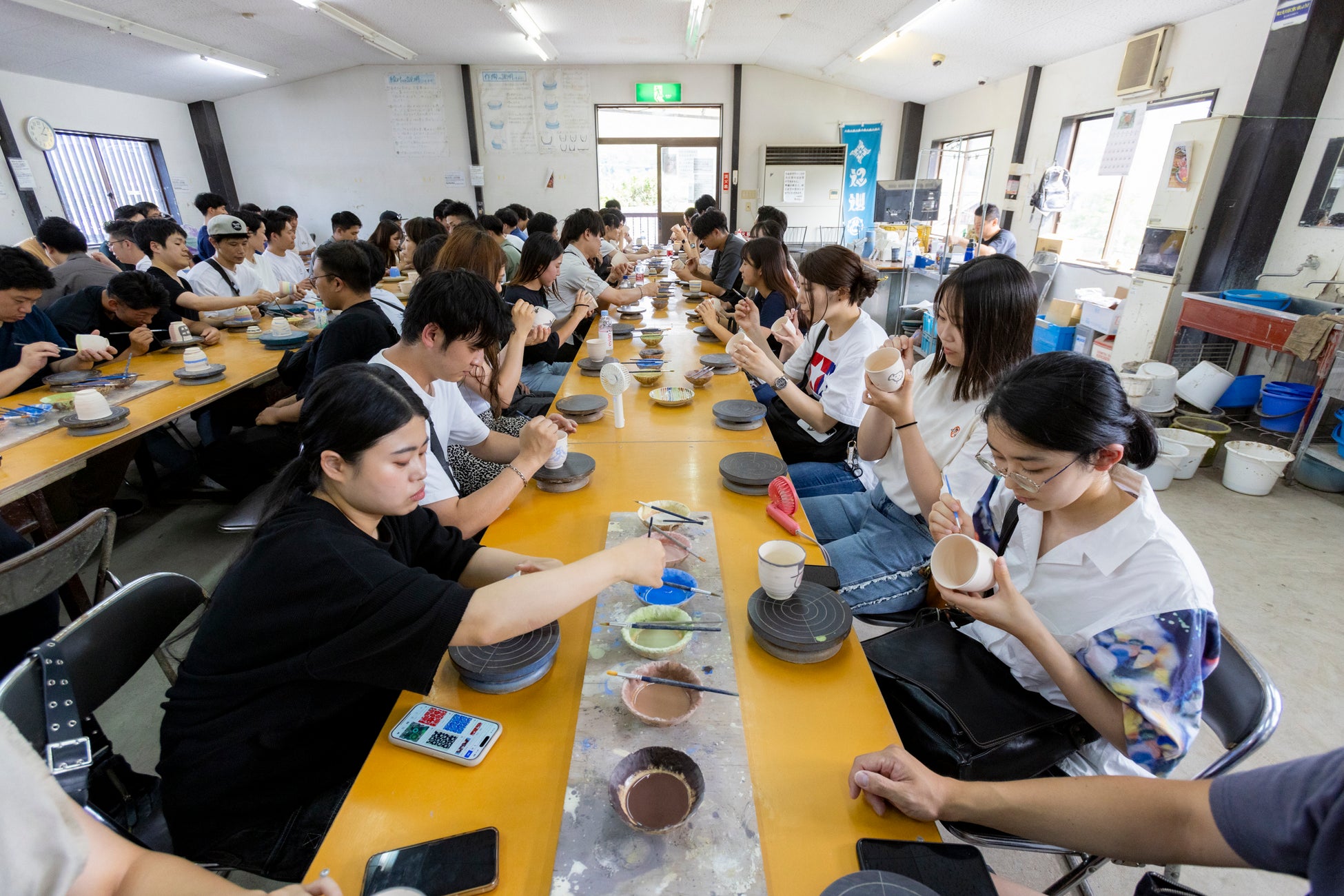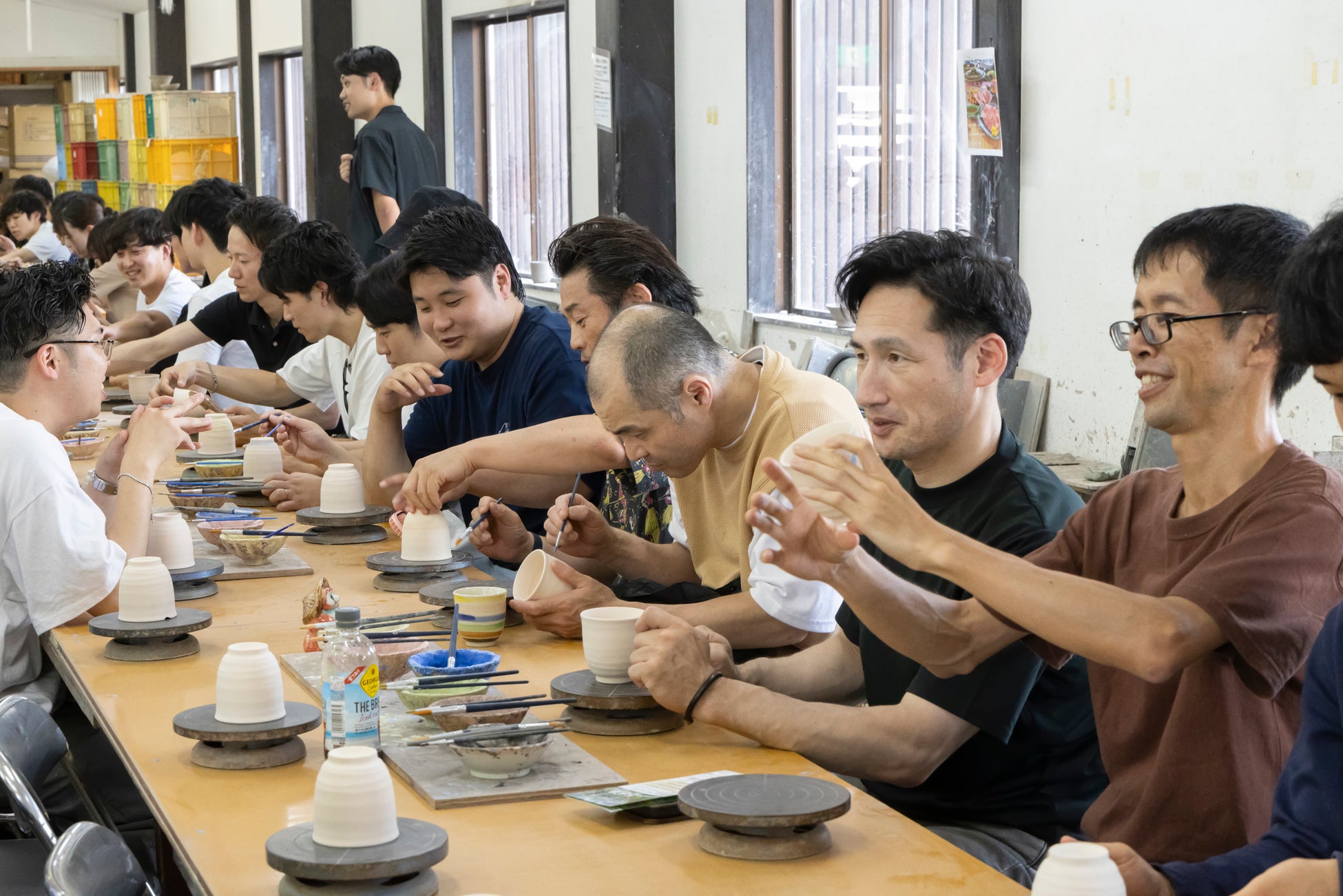 「たぬき村」で絵付けを体験しました。普段の仕事とは異なるリフレッシュのひとときを提供しました。