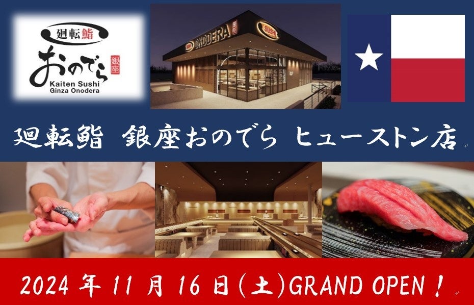 運営する「銀座おのでら」は、2024 年11 月16 日(土)(現地時間)、アメリカ合衆国テキサス州ヒューストンに「廻転鮨 銀座おのでら ヒューストン店」をグランドオープンいたしますのでお知らせいたします。