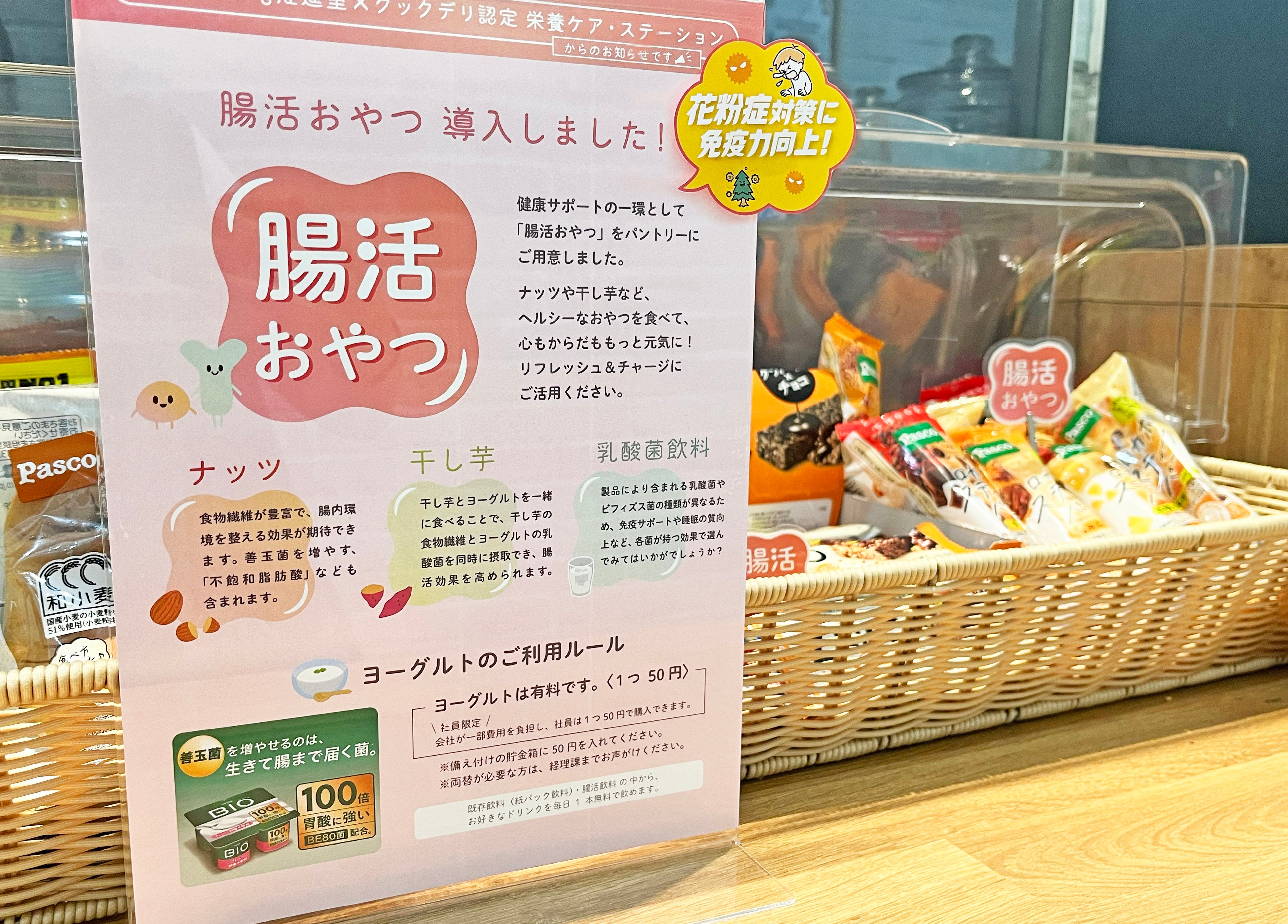 当社では、花粉症対策とあわせて腸内環境を整える取り組みを進めることで、社員の体調管理を内側から支える健康経営を推進しています。