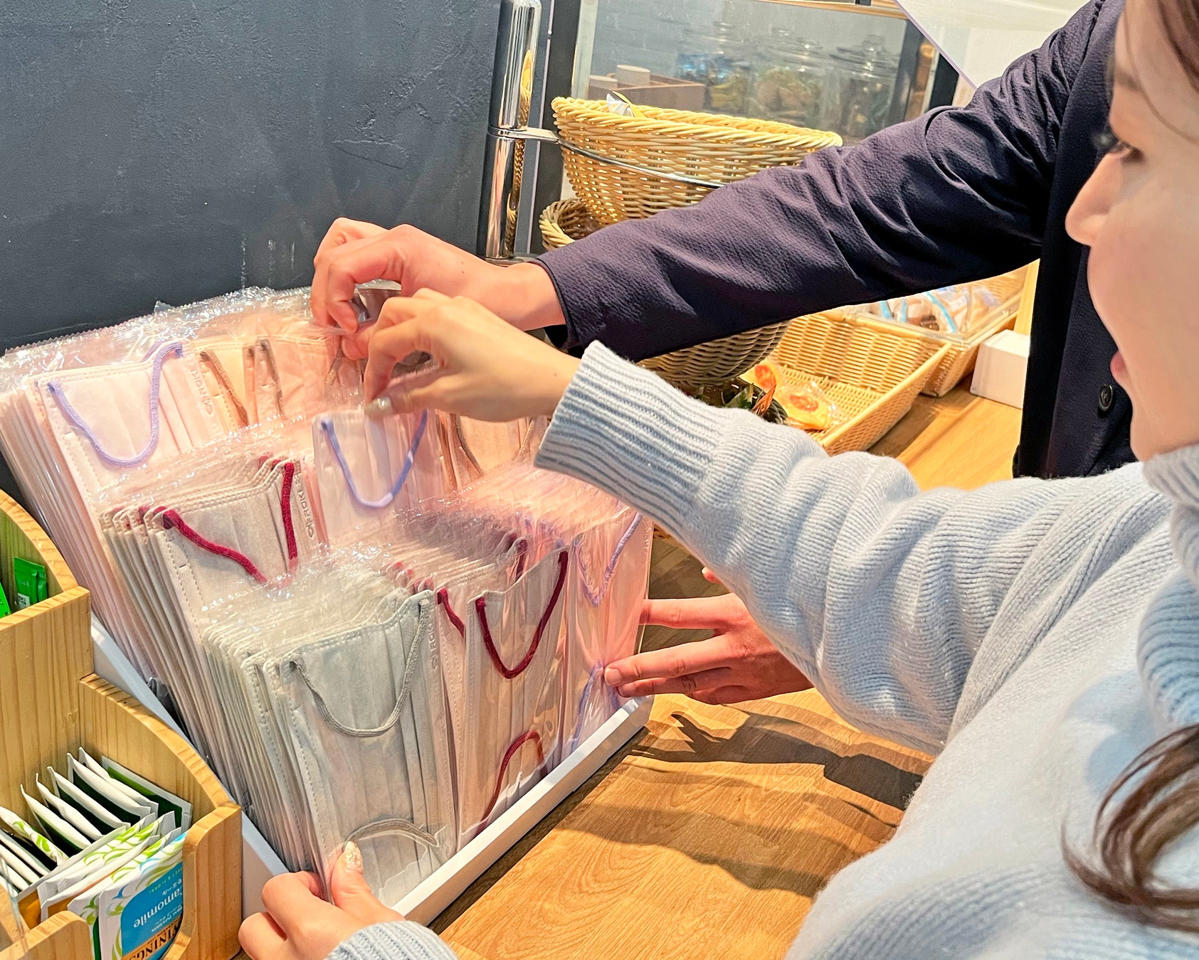 ② 高保湿ティッシュの配布に加え、マスクの配布も実施