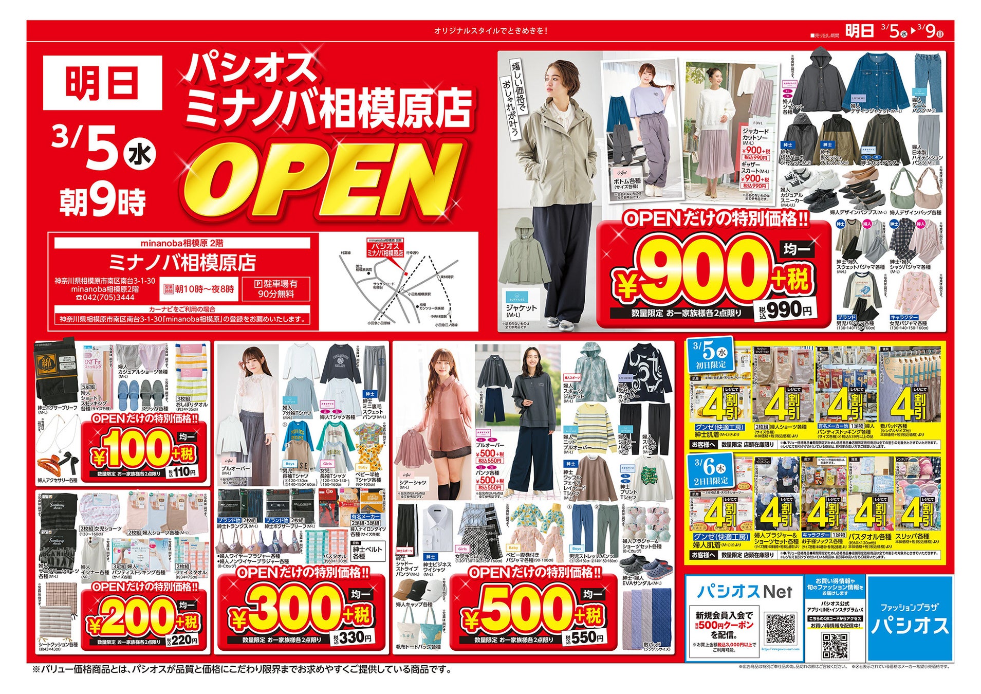 ファッションプラザ【パシオス】が3/5(水)「minanoba(ミナノバ)相模原」に新店をオープン