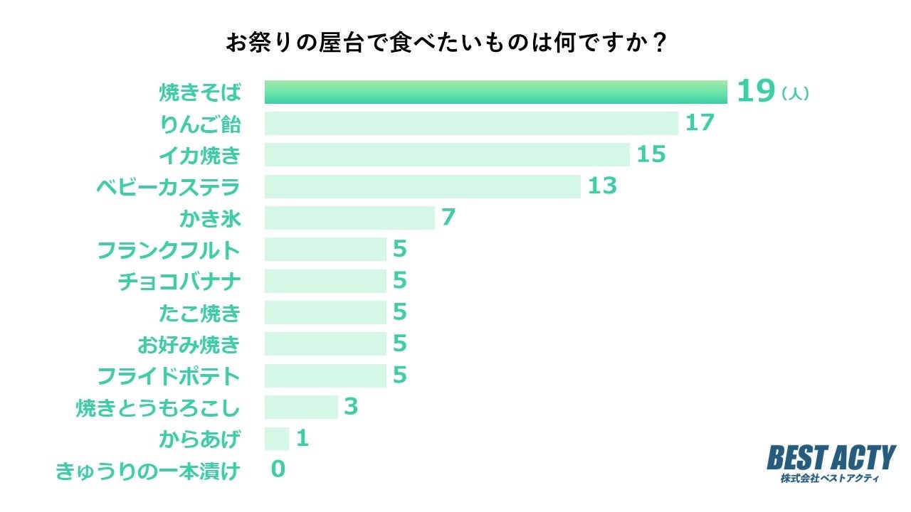 アンケートの結果、「焼きそば」と答える人が最も多い結果となりました。