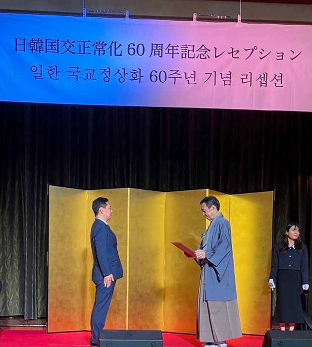 2025年6月16日(月)、ソウル・ロッテホテルで開催された「日韓国交正常化60周年記念レセプション」にて、外務省より表彰状が授与されました。