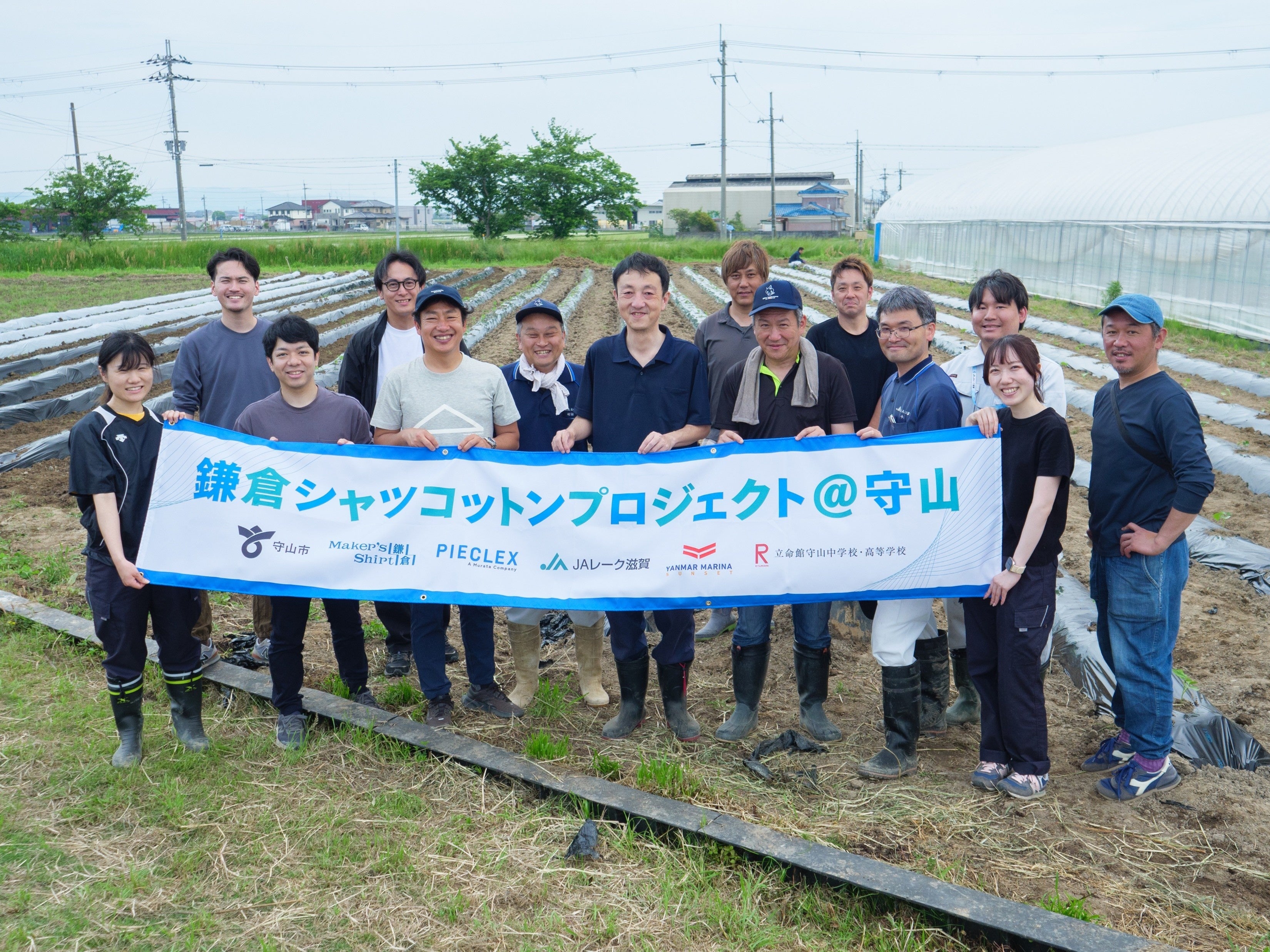 鎌倉シャツコットンプロジェクト@守山では、ピエクレックスが推進するアパレル製品の回収・堆肥化システム「P-FACTS」(ピーファクツ)を活用し、使用済み製品を堆肥化してコットン栽培に再利用、栽培したコットンを製品化し、さらに使用後は回収・堆肥化する循環型ファッションモデルの構築を目指しています。守山市内3か所でのコットン栽培から始め、自治体・企業・農協・教育機関が連携し、地域を起点としたサステナブルファッションの社会実装に取り組んでまいります。
