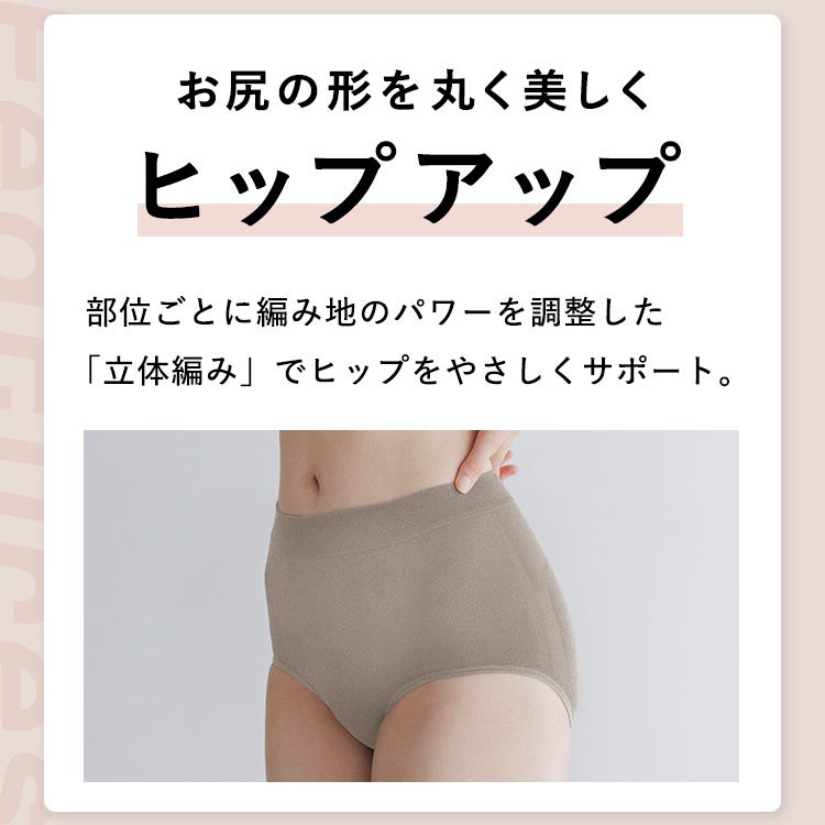 『BAMBI WATER スタイルショーツ ハイ』は、レギュラータイプである「BAMBI WATER スタイルショーツ」よりもウエストの高さを2.5cmプラスし、お腹全体を包み込むデザインです。これにより、夏の冷房から冬の寒さまで、オールシーズンでお腹を冷えから守り、快適な着用感を提供します。さらに、ウエスト上部は幅にこだわった特殊リブ加工を、下腹部には特殊な編み加工を施し、段差による「はみ出しお肉」を防ぎ、ヒップアップ効果をキープ。スタイルアップを実現しながらも、長時間の着用でもストレスを感じないよう設計しています。
