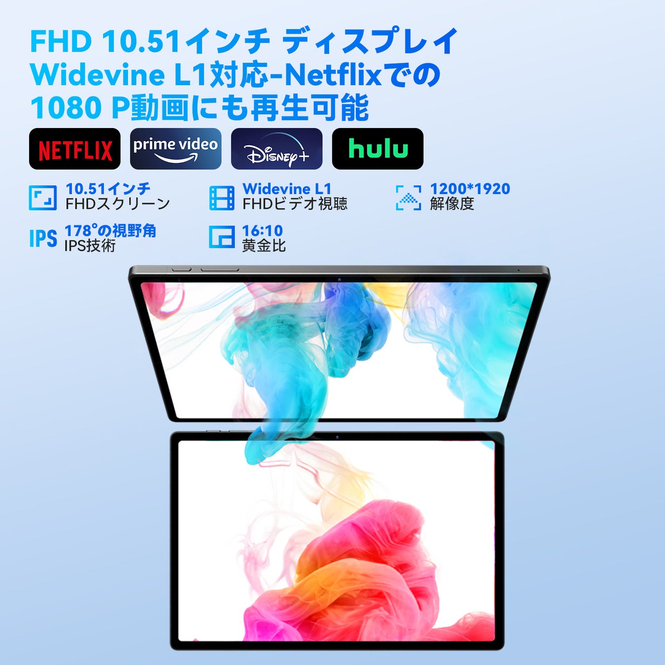 Hpad5はWidevine L1をサポートしており、Netflix、HBO、Disney+、Amazonプライム・ビデオなどのグローバルなHDメディア・ストリーミング・プラットフォームで1080p HDビデオをいつでも視聴できます。10.51インチの大画面ディスプレイは、16:10の黄金比と1920 x 1200の高解像度を備え、詳細で鮮明な画像と優れた色再現性を実現します。