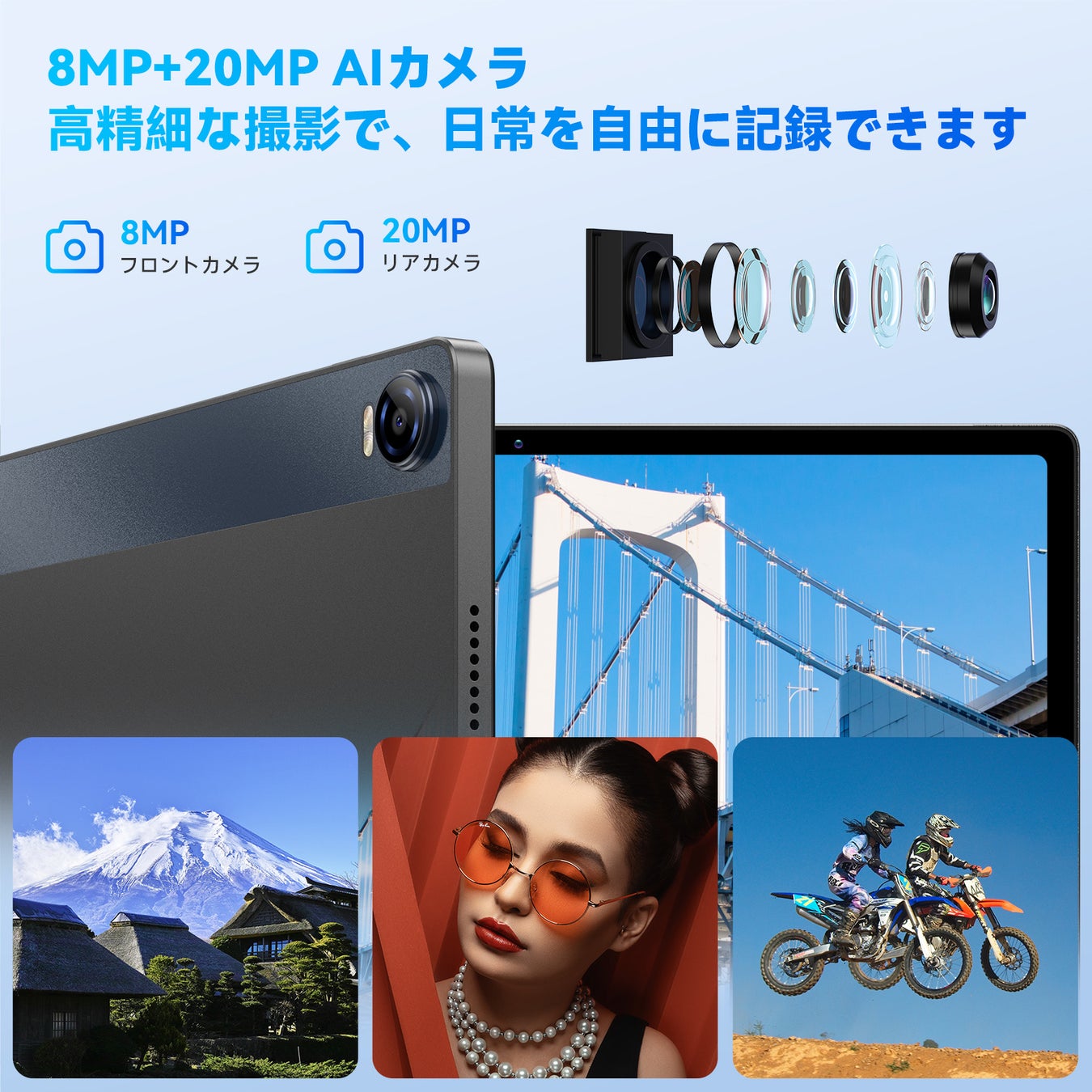 Hpad5は、デュアルのハイビジョンカメラを搭載しています。8MPのフロントカメラは、クリアで自然なポートレートを撮影し、ビデオ通話時によりリアルな体験を提供します。20MPのオートフォーカスリアカメラは、内蔵フラッシュとともに暗い場所のディテールを照らし出し、素晴らしい瞬間を簡単に捉えることができます。