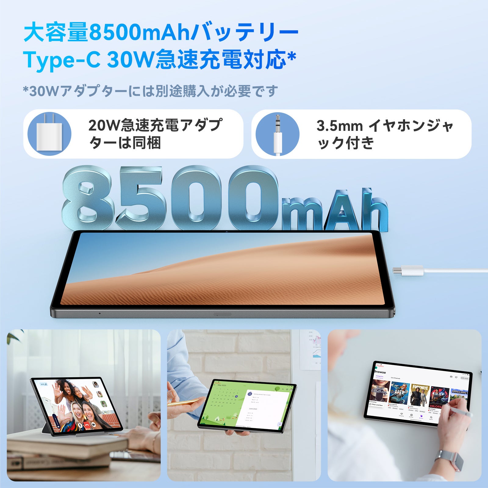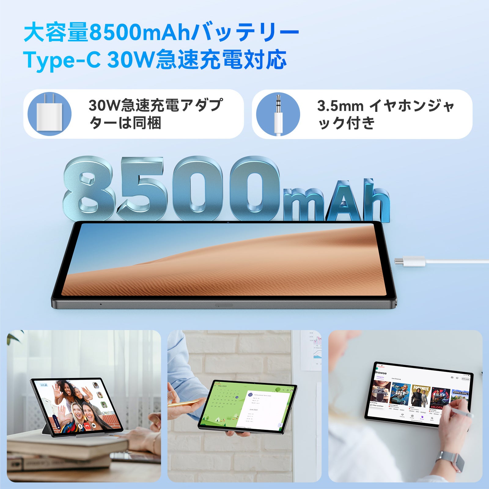 Hpad5は、最大8500mAhの高容量バッテリーを備えており、十分なパワーを提供します。実際のテストでは、1080Pのビデオを連続再生することができ、最大12時間の使用が可能であり、バッテリー切れの心配なく日常の仕事やエンターテイメントを楽しむことができます。Type-C 30Wの高速充電とOTGをサポートしており、素早くバッテリーを充電することができます。バッテリーのサイクル数が高く、一般のバッテリーよりも劣化に対して耐性があり、安全性も優れています。