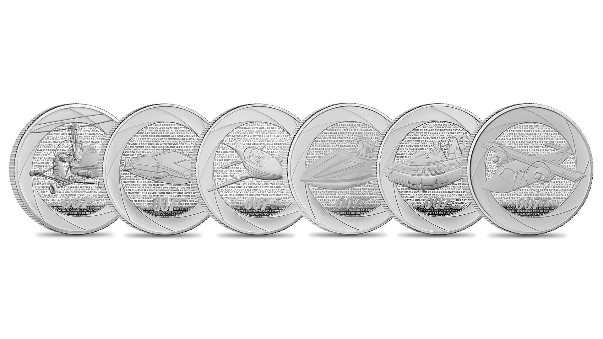 ボンド映画に登場する乗り物をモチーフにした、コイン・シリーズ「007の60年」。最新作はウェット・ネリーを始めとする6つの乗り物が集結した「コンプリーター」