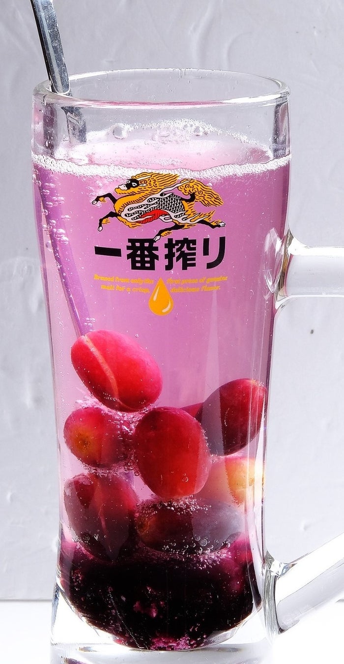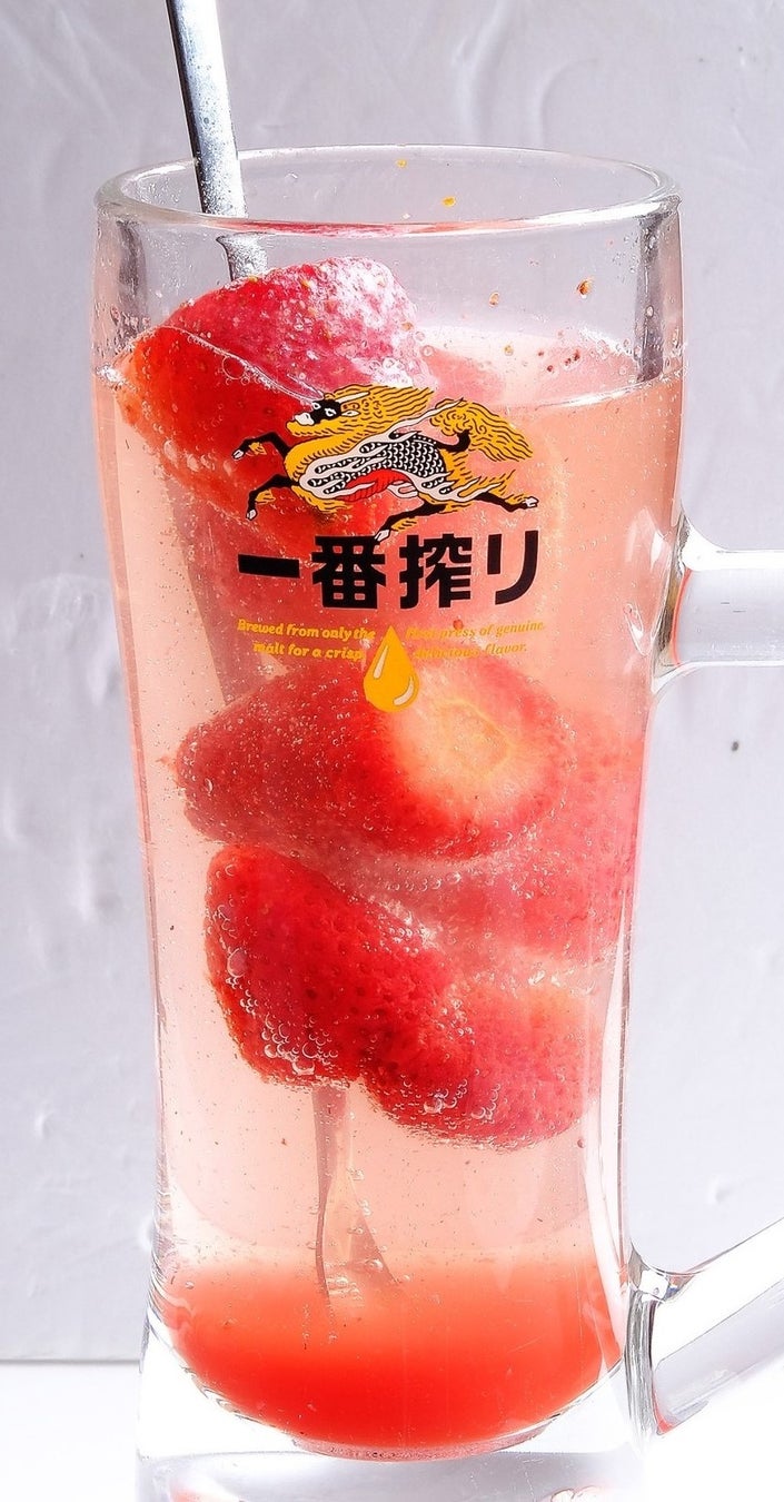 春メニュー其の五:春の丸ごと凍結サワー(レモン・ぶどう・いちご) 各580円(税込638円)