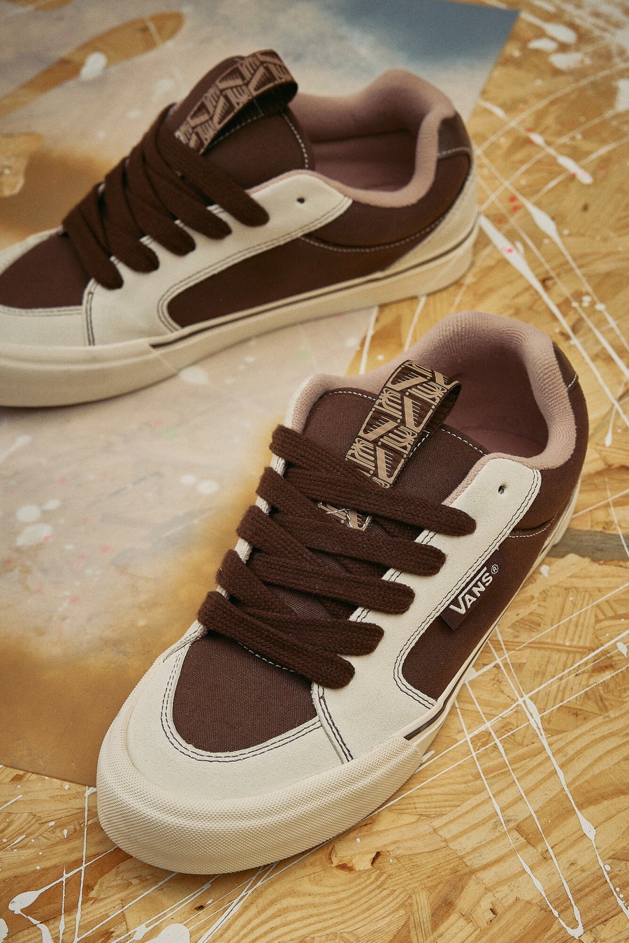 本コレクションで騎士の美徳にインスパイアされ、スケートカルチャーの勇気、回復力、信念を表現する新たなキャラクター「Vans Knight」を生み出しました。「Vans Knight」をモチーフにした「CHUKKA PUSH LS」のシュータン部分には、中世を彷彿とさせるデザインの刺繍が施されています。秋冬シーズンに合わせて温もりのあるチョコレートマティーニとデザートトープをコレクションのメインカラーとして採用しました。