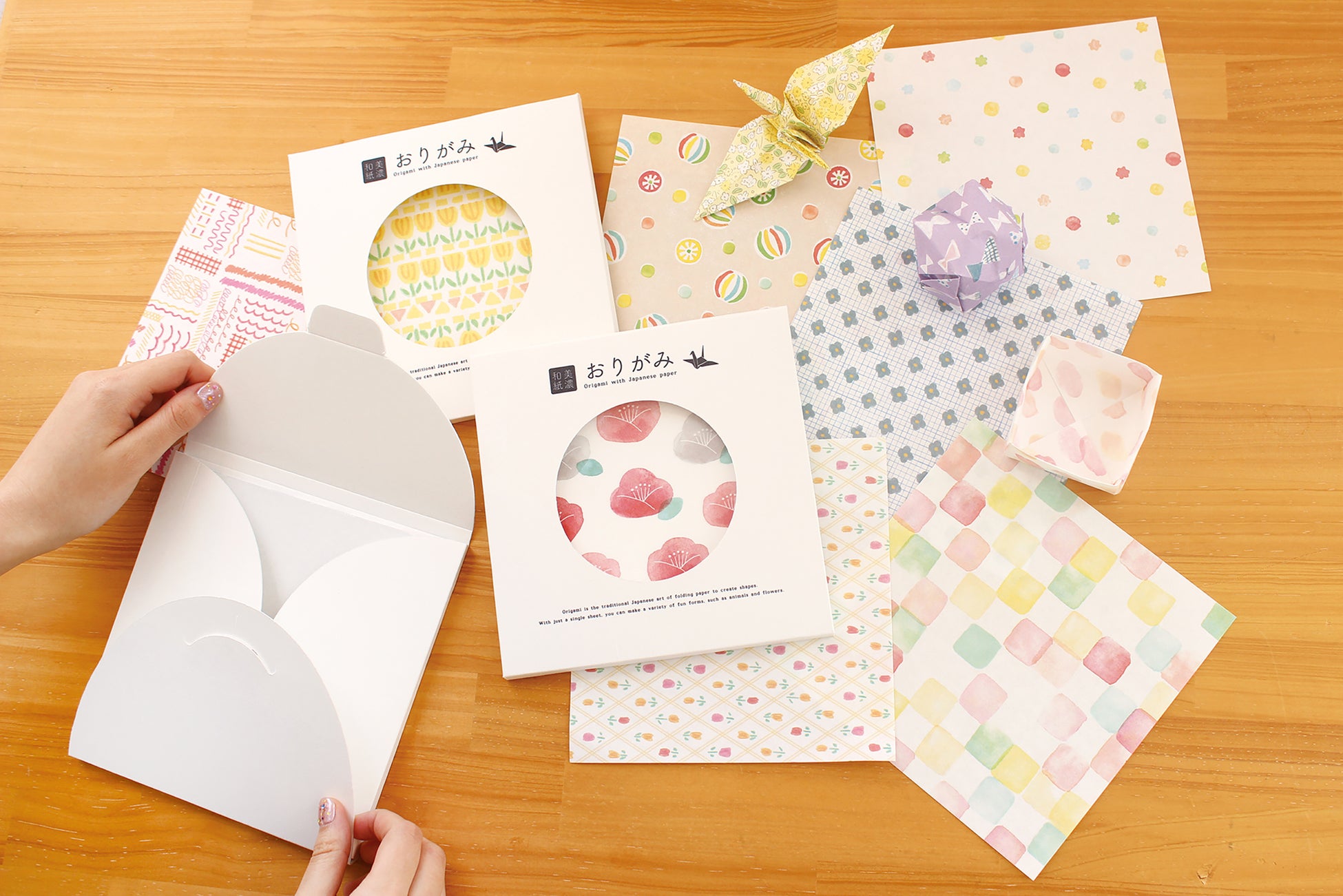 どこか今っぽく、思わず手に取りたくなるかわいさで、折り紙として楽しむのはもちろん、箱のまま飾ったり、ちょっとした贈りものとしても活躍します。