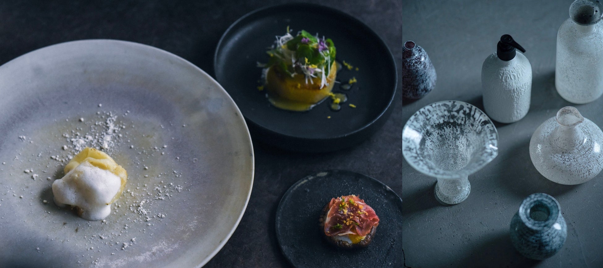 山崎円城氏とOSAJIブランドディレクター・茂田正和を交え、エキシビションやコラボレーションの制作エピソードとともに、ensoの発酵料理をお楽しんでいただく一夜限りの食事会