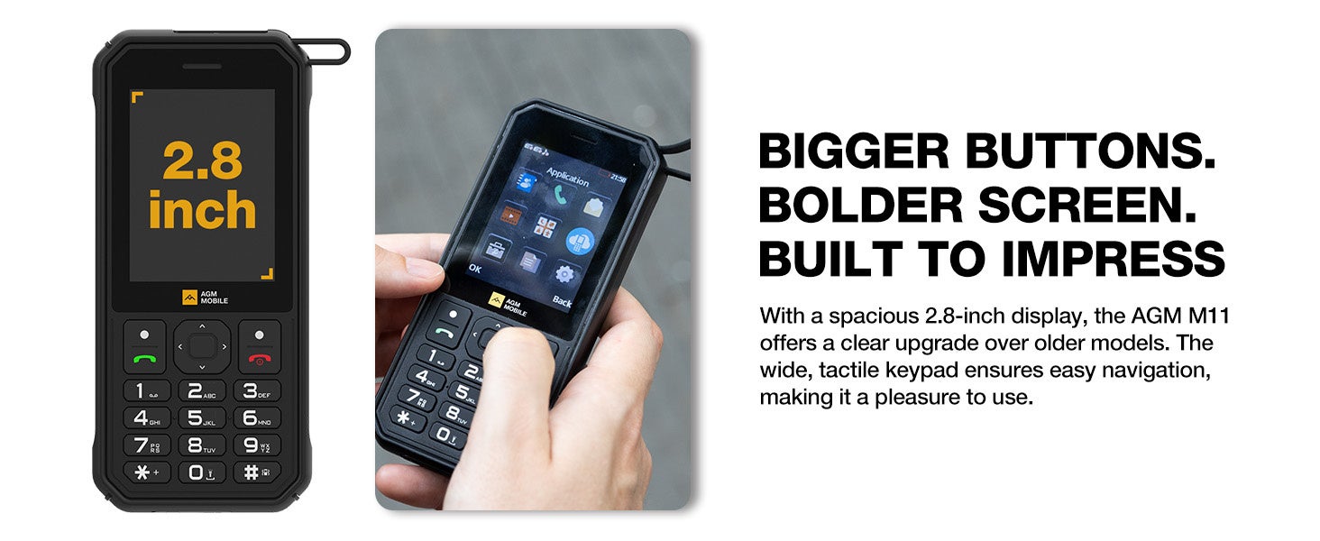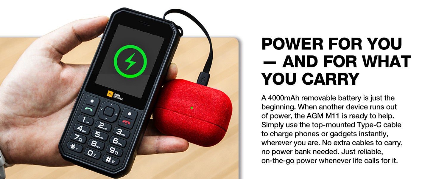 2026年1月4日 - 過酷環境向けモバイルデバイスの専門メーカーであるAGMは本日、フィーチャーフォンの概念を再定義する多機能モデル「AGM M11」を発表し、同日より発売を開始します。本機は、単なる通話・メールのツールを超え、「取り外し可能な大容量バッテリーによる充電バンク機能」「4G LTEを利用した即時Wi-Fiホットスポット化」「IP68/IP69K/MIL-STD-810H認定の高い耐久性」を一つのコンパクトな筐体に融合。日常生活からアウトドアまで、ユーザーの荷物と電池切れの不安を同時に軽減する、全く新しいカテゴリーのデバイスです。