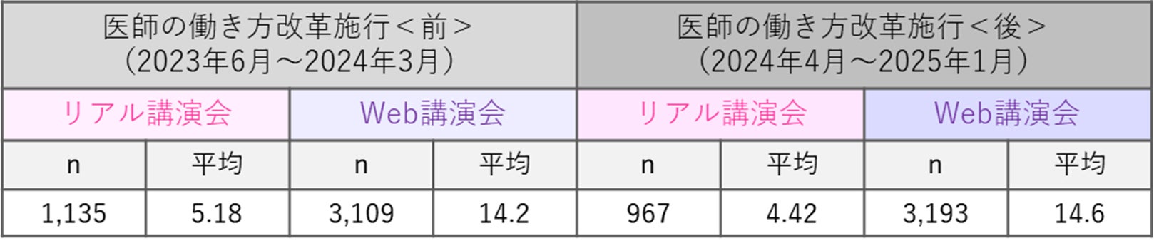 医師の働き方改革施行後はリアル講演会への参加が減少した。