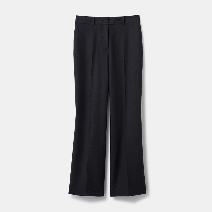 「ウールブレンドストレートパンツ」はセンタープレスが縦ラインを強調し、すっきりとしたシャープなデザインが印象的なセミワイドストレートのパンツです。裾に掛けて緩やかに広がるフレアシルエットが足を長く見せてくれます。ステッチを目立たせない縫製にこだわり、ミニマルに仕上げています。