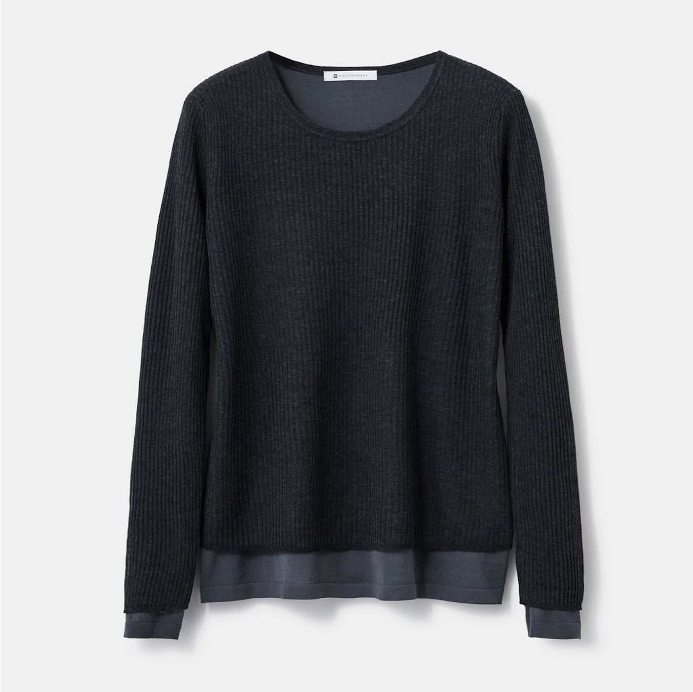 「シアーリブニットプルオーバー 」は、着る人の個性でレイヤードを楽しめるように、袖と裾は表面と内側をセパレートした仕様になっています。柔らかなニット素材なので、細身のシルエットでもリラクシーな着心地です。