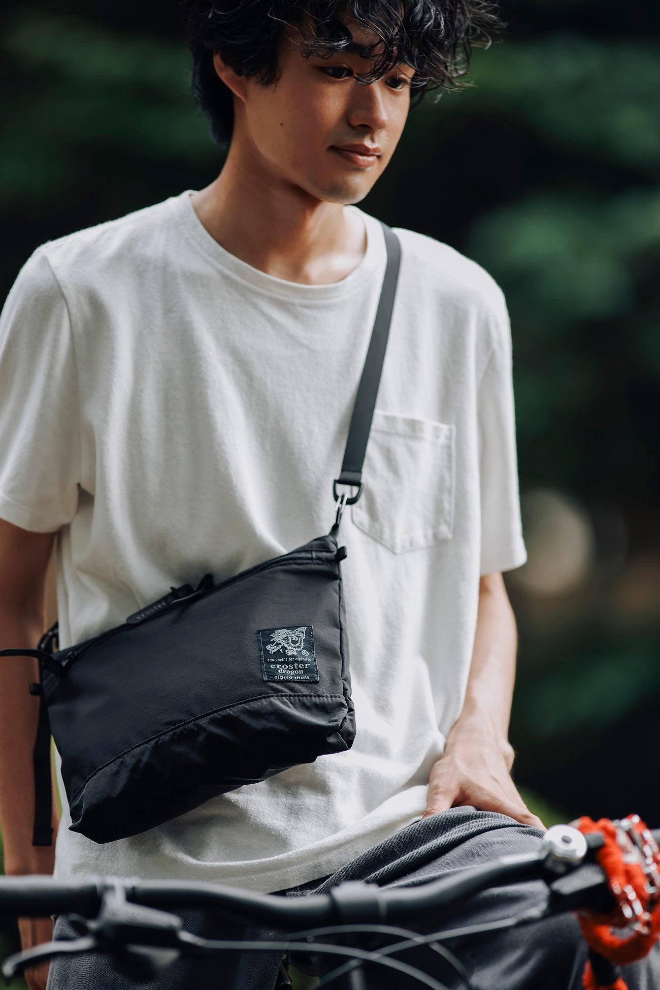 テントや寝袋などにも採用されているリップストップナイロンを使用した、丈夫で軽量なボディバッグ。