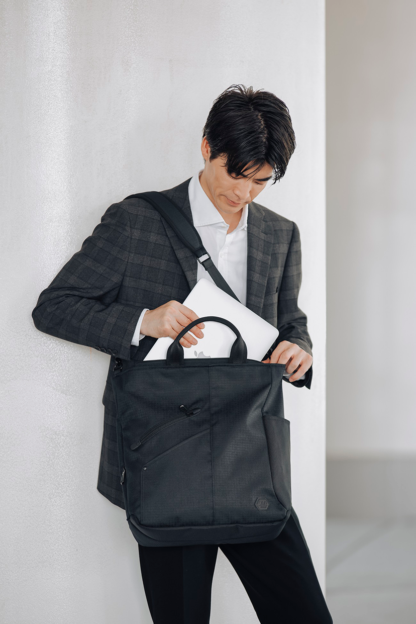 ビジネスからデイリーユースまで、さまざまなスタイルになじむバッグ。