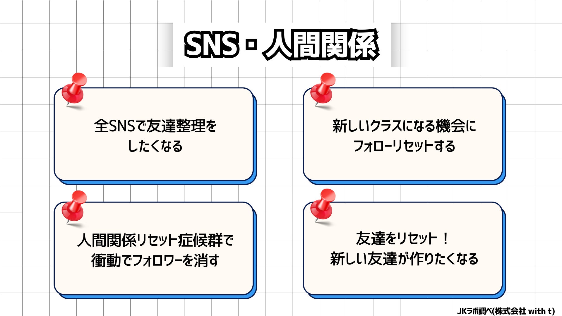【JKの人間関係も断捨離!?】学年末に急増する「リセット症候群」の実態を調査。新学期、女子高生が一番変えたいのは“筆箱”と“SNS”!