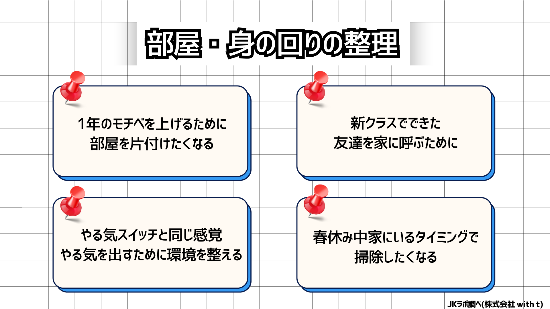 学習教材の整理や気持ちの切り替えなど、新学期という節目を「自分を新しく創り直すチャンス」と捉えている。