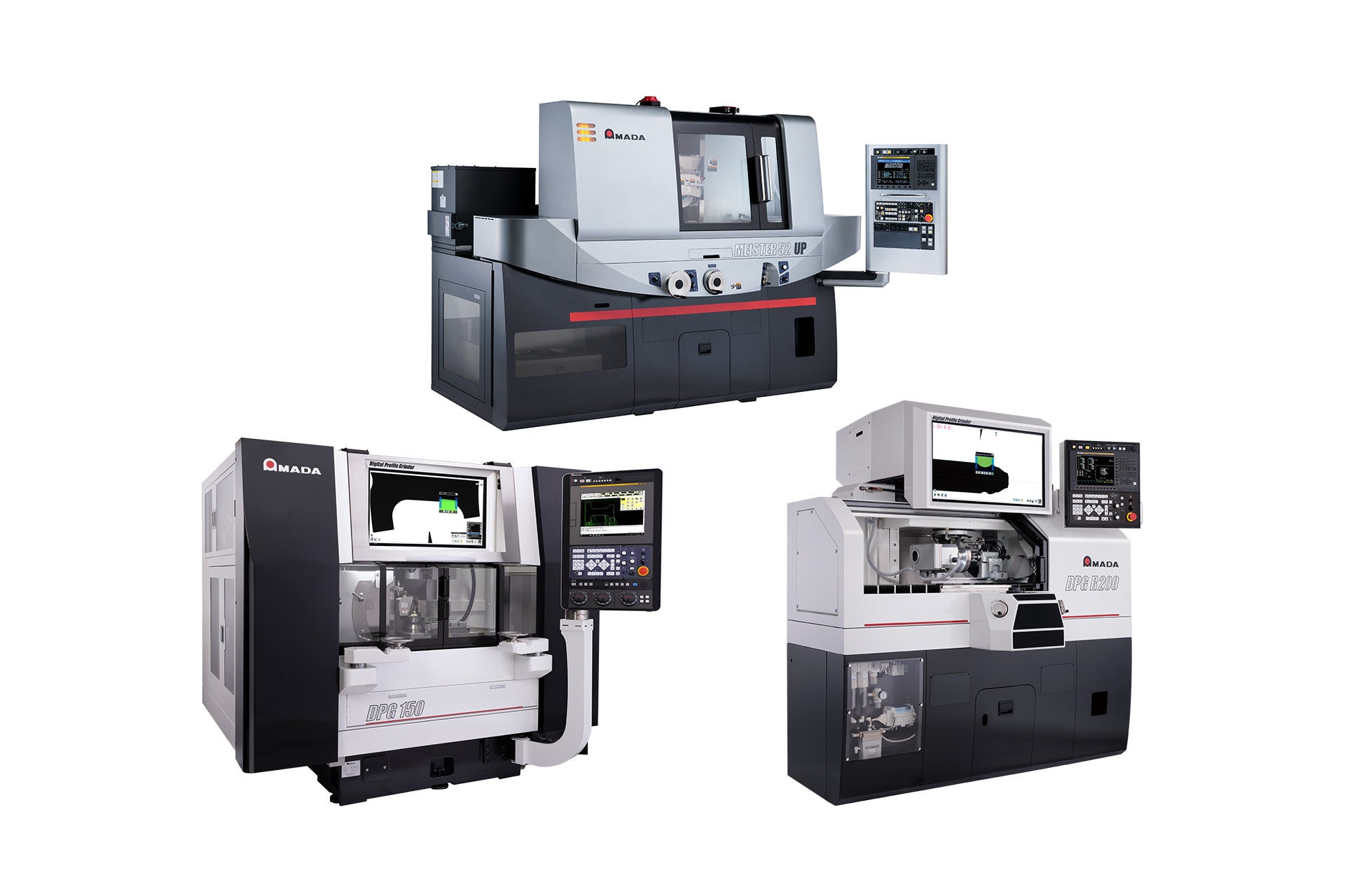 デジタル円筒プロファイル研削盤「DPG-R-200」は、デジタルプロジェクター搭載のシリーズ展開機として新たに開発。といし旋回機能によるシームレス加工が可能で、複雑な形状の円筒プロファイル研削加工に対応できる高精度マシンです。