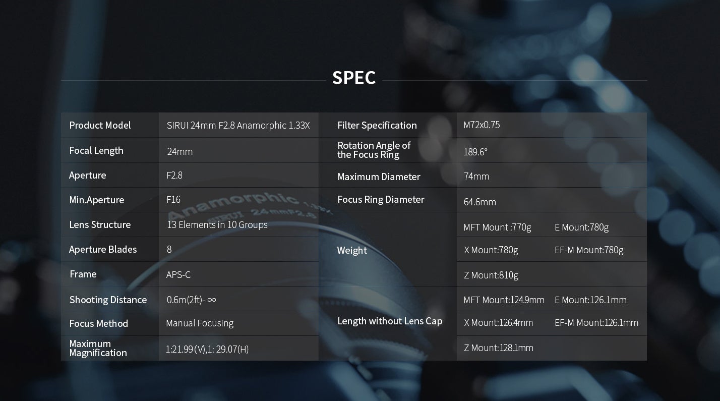 【SIRUI 24mm APS-C F2.8 1.33Xアナモルフィックレンズ】想像を超える映画体験を!