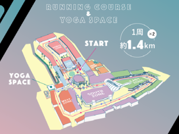 ■店舗数日本一の敷地を活かしたランニングコースに加え、ヨガプログラムも開催!