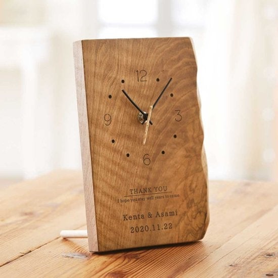 長い年月を積み重ねた木の温もりを感じられます。さらに、メッセージを刻むことで、より一層特別感を演出できます。