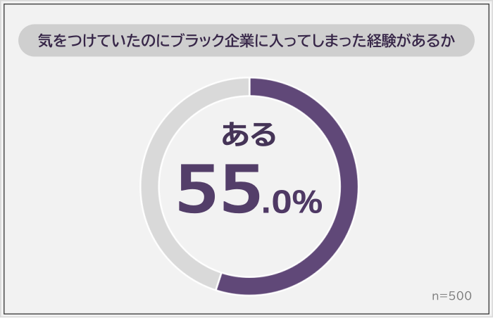 気をつけていたのにブラック企業に入ってしまったと答えた人は55.0%
