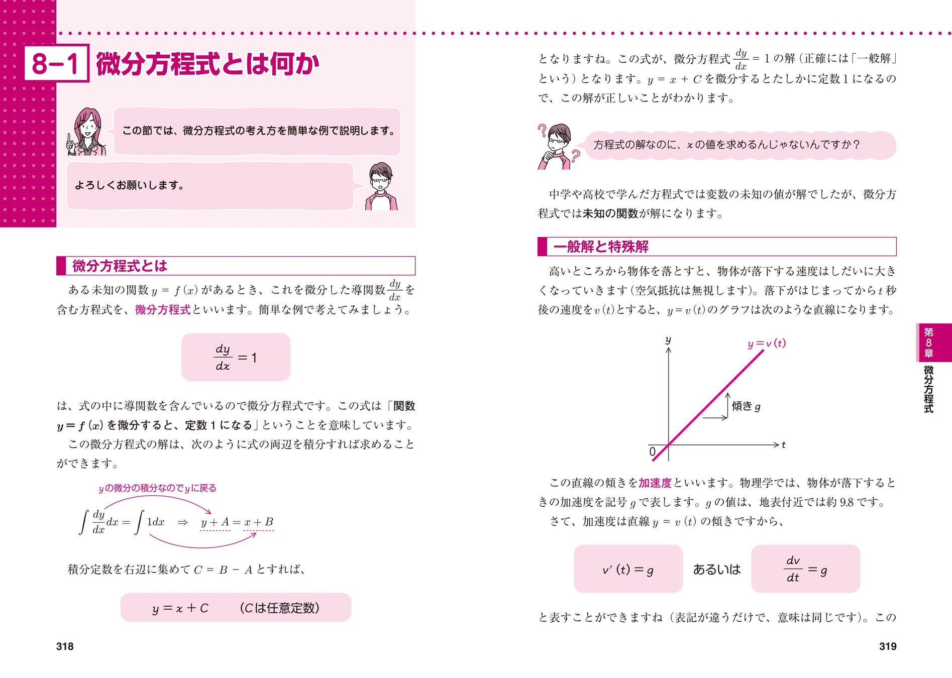 最後の第8章では、微分方程式を解説しています。何度もチャレンジしては挫折した人も、本書ならリベンジできる内容になっています。