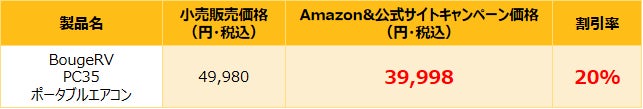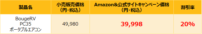 寝苦しい夏に快適な涼しさを。BougeRV、「PC35ポータブルエアコン」が待望の復活