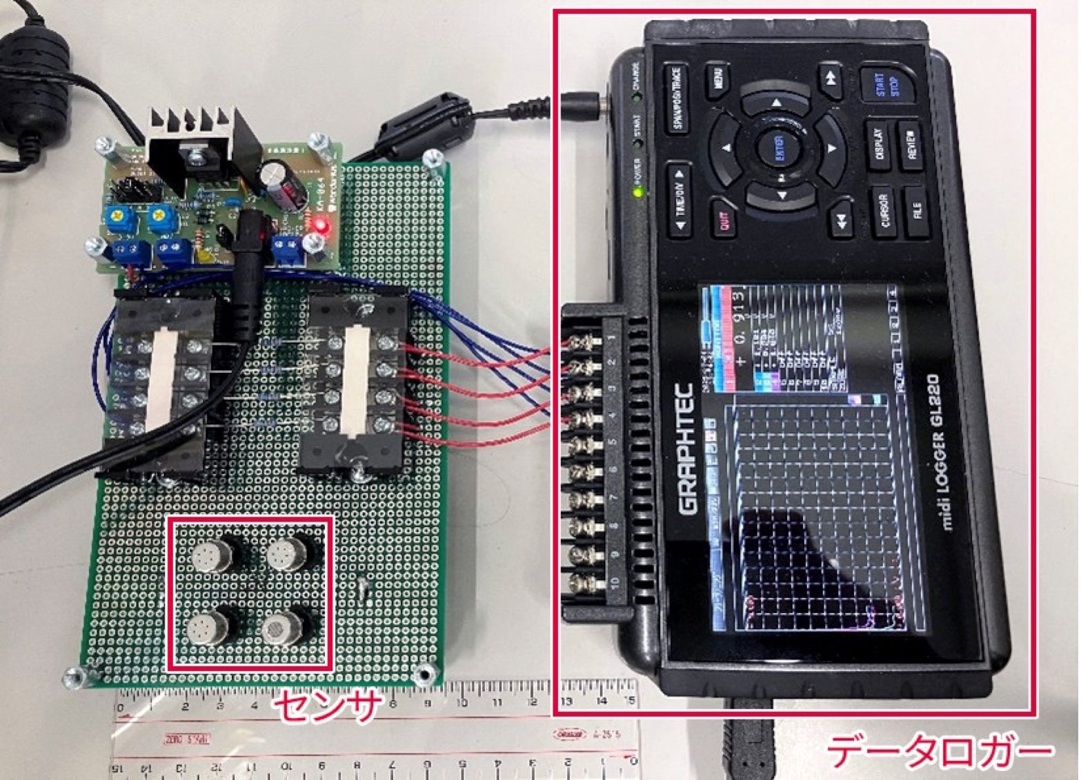 ・市販センサと回路を用いた実習。アプリによるリアルタイム判定を体験いただけます。