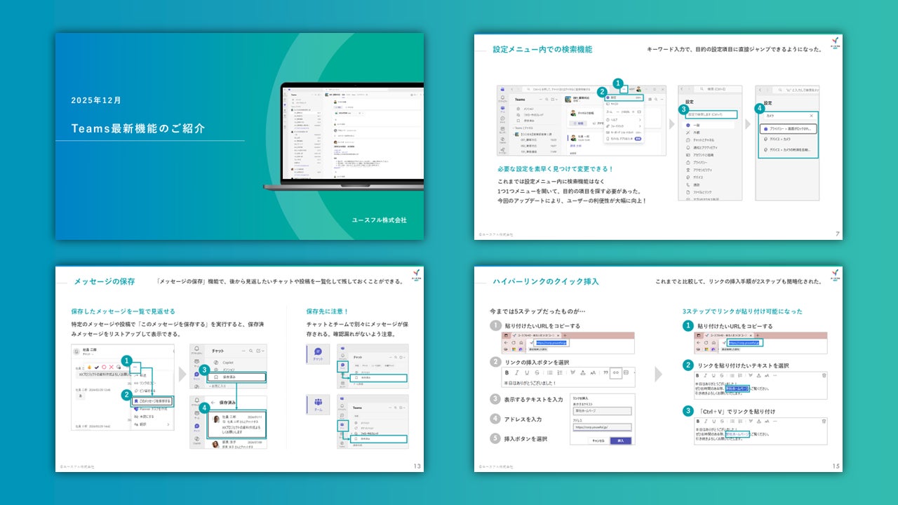 「創る人をつくる」をミッションに、Microsoft 365×生成AIの法人研修サービスを提供するユースフル株式会社(本社:東京都千代田区、代表取締役:大垣 凛太郎)は、数あるMicrosoft Teamsのアップデートの中から、実務での「即効性」に特化した便利機能をまとめたホワイトペーパー『Teams最新機能ガイド 2025年12月版』を、本日より公式サイトにて無料公開いたしました。