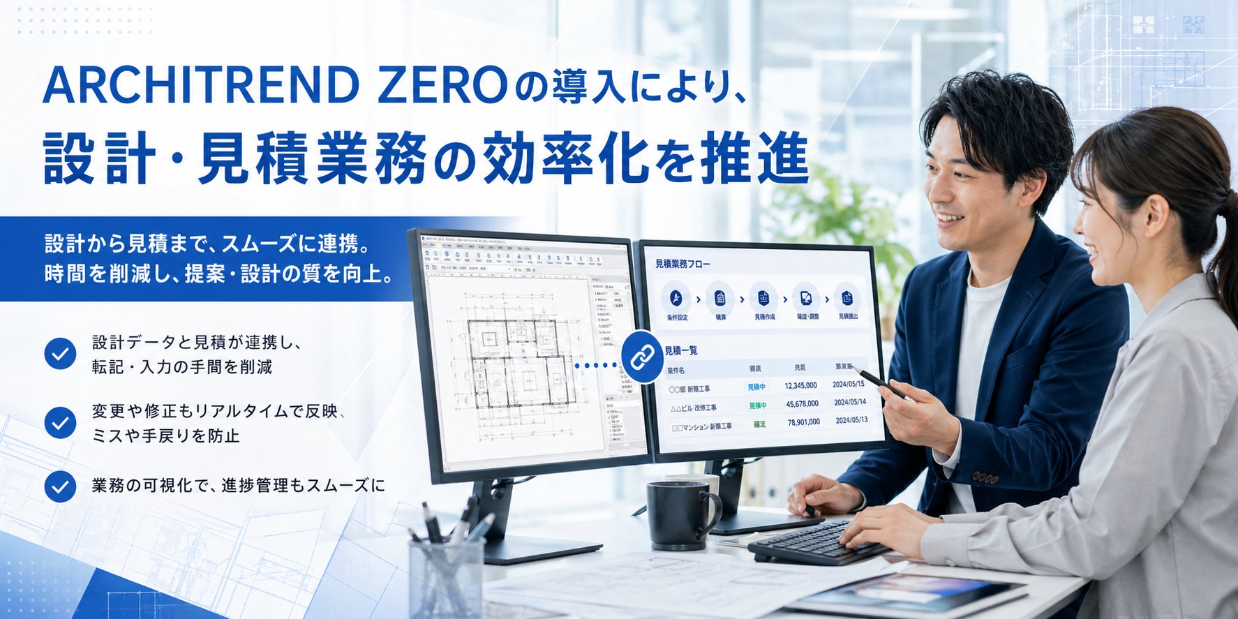セイコー・エステート&ディベロップメント株式会社は、建築設計・見積業務の効率化と建築士の働き方改革を目的に、3D建築CADシステム「ARCHITREND ZERO」を導入しました。CAD×見積連携により、建築士が作業に追われる働き方から、設計・提案・不動産投資家の意思決定支援に集中できる環境づくりを進めています。