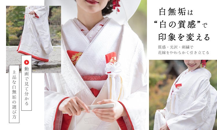 写真だけでは伝わらない刺繍や織りの質感を動画で可視化。色打掛・白無垢の違いを分かりやすく解説し、納得して選べる新しい花嫁和装の提案。