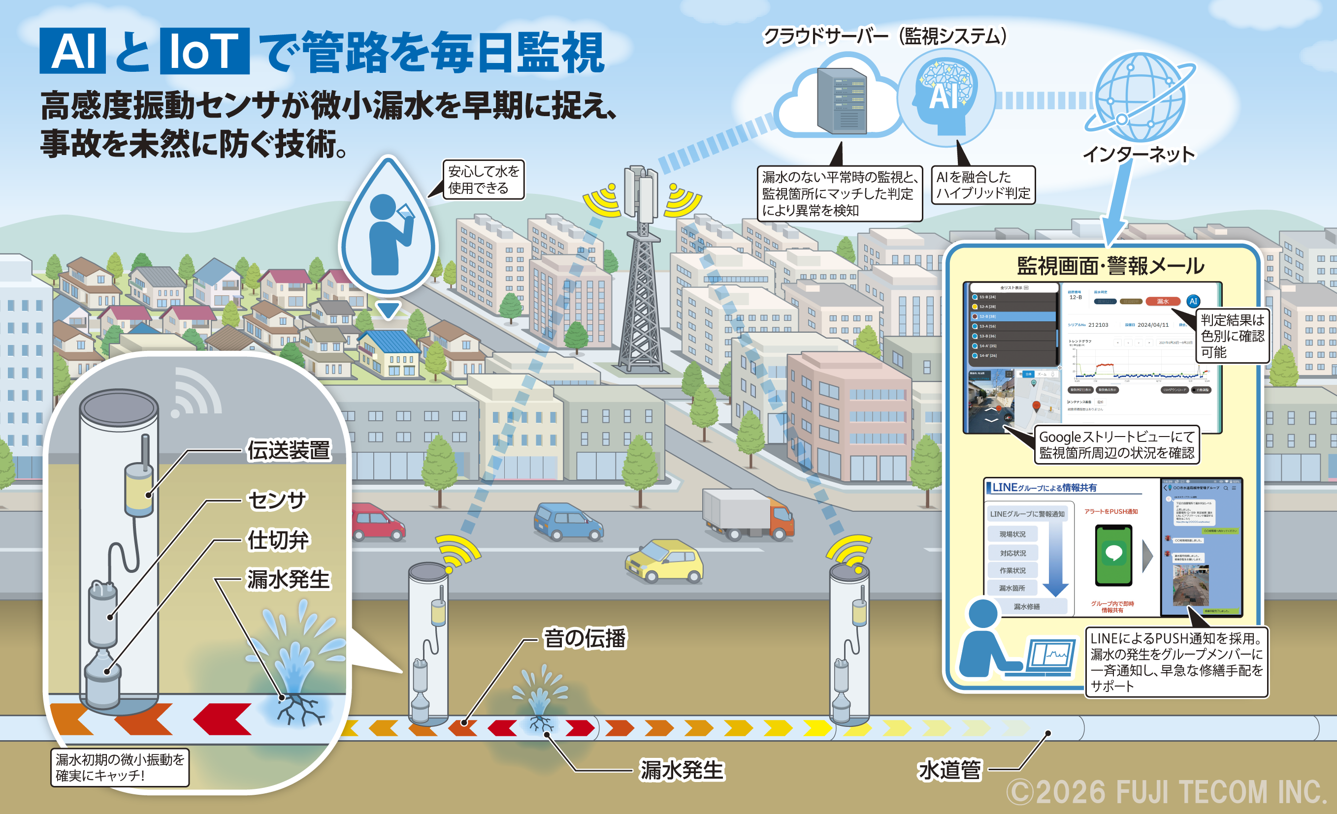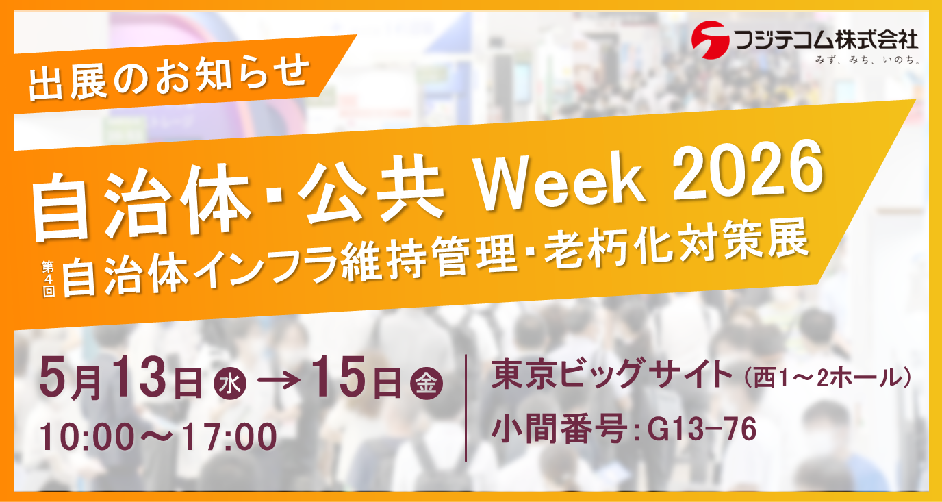 フジテコム株式会社(本社:東京都千代田区、代表取締役:森山 慎一)は、2026年5月13日(水)~15日(金)に東京ビッグサイトにて開催される「自治体・公共Week2026」に、漏水事故による社会的な損失を未然に防ぎ、水道管路の予防保全の高度化を実現するクラウド型IoT遠隔漏水監視システム「リークネッツセルラー LNL-C」をご紹介、さらに開発中の次期モデルを参考出展いたします。