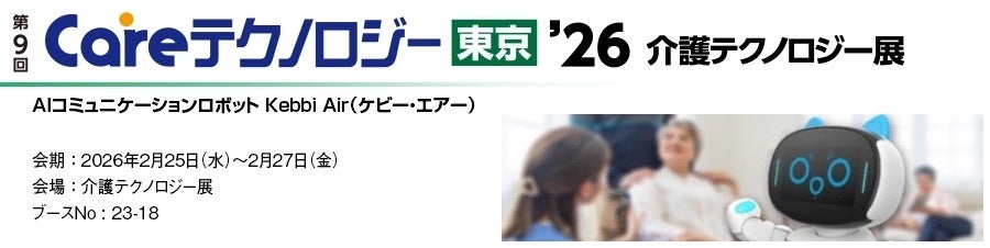 本展示会では、AIコミュニケーションロボット「Kebbi Air」を展示し、会話や受付、レクリエーション、見守りといった介護の各シーンにおける活用方法をご提案します。