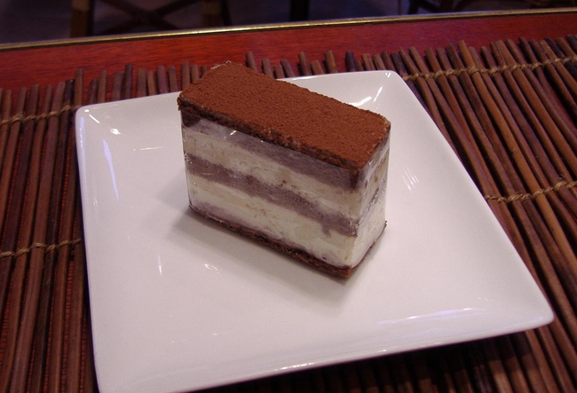 特徴:タヒチアンノニ ジュースをスポンジとクリームに使用した、クリーミーなティラミス。ほのかにノニジュースの香りがする、大人なティラミスです。