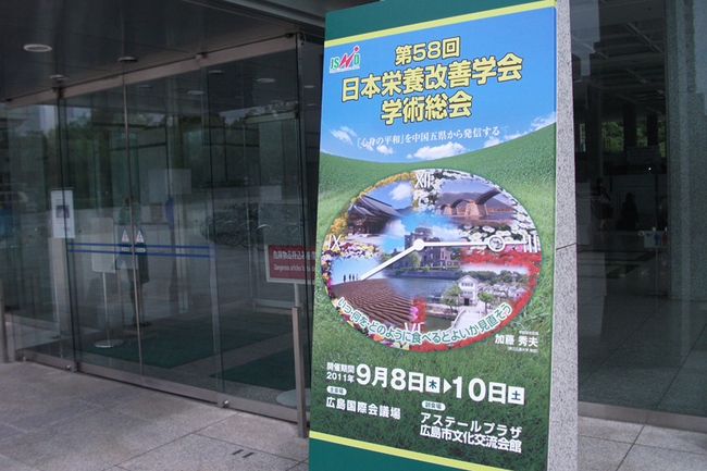 9月8日に広島にて開催された「第58回日本栄養改善学会学術総会」に、賛同金の協力を行いました。日本栄養改善学会学術総会は、栄養学や健康科学の研究・教育と実践に携わる第一人者が、学術調査研究の成果を発表し、新しい栄養学の方向性や人々の健康増進に寄与する機会とすることを目的とした歴史ある学会です。