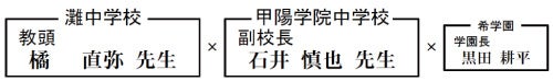 私立学校の名門、灘中学校と甲陽学院中学校、その両校で長年教育に携わってこられた先生方に希学園学園長が加わり三者で、教育について熱く議論を交わします。