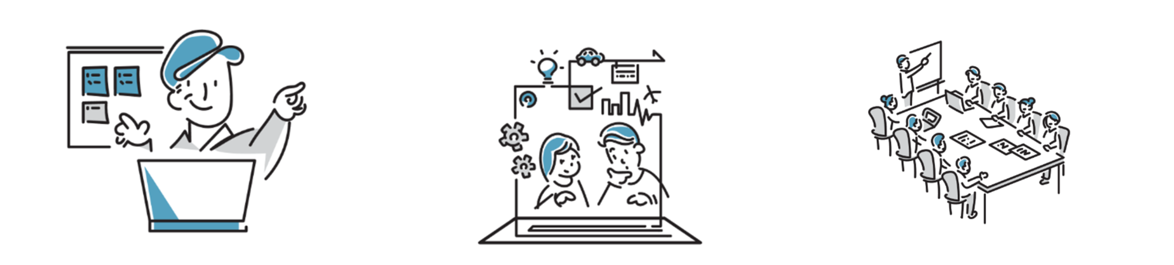 クリエーションラインが擁するアジャイルのスペシャリストと顧客企業様とで合同チームを立ち上げ、チームビルディングからスクラムでのアジャイル開発を実践、習得までをサポートします。