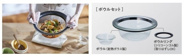 下ごしらえ、レンジ調理、冷蔵保存など多彩に使える付属の「ボウルセット」つき