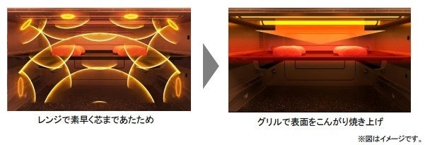 ① レンジ機能からグリル機能へ自動切り換え!「芯まで“レジグリ”」