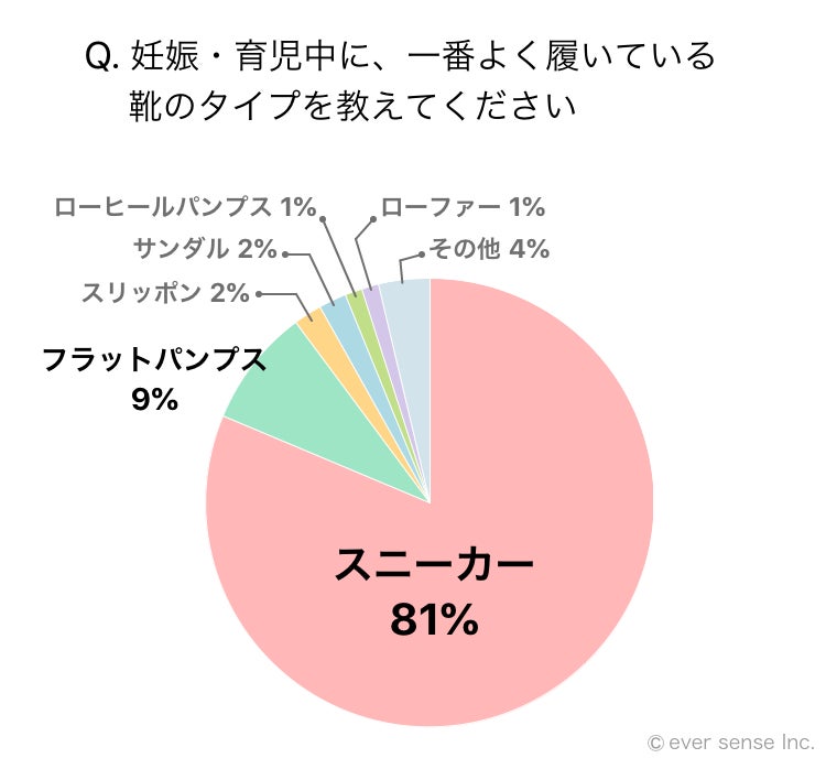 【調査結果】ママが妊娠・育児中の靴で重視することNo.1は「脱ぎ履きのしやすさ」。8割はスニーカー派だが、そのうちの8割は「きれいめな靴を履きたいと思うシーンがある」と回答。