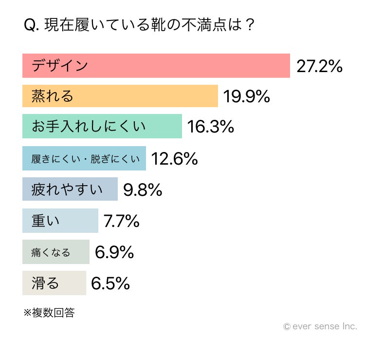 - 今履いている靴の不満点は「デザイン」と「手入れのしにくさ」