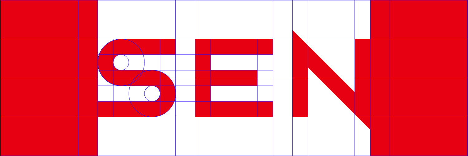 SENの字形は0から制作し、可読性がありながらも、Nの上下2箇所の折り返しをあえてS・Eの高さと揃えずデザインすることで、常識にとらわれない独自性を表現しています。