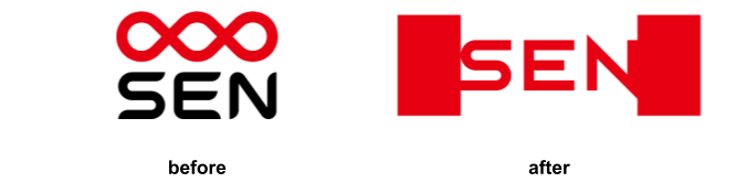 印象的な左右の赤い長方形は「センラインズ」と名付けシンプルに「道」を表現。その中心に社名である「SEN」を配置することで、新しい道へ挑戦する・道を切り開いて前進する・道の中心的企業でありたいとの思いを表現しました。