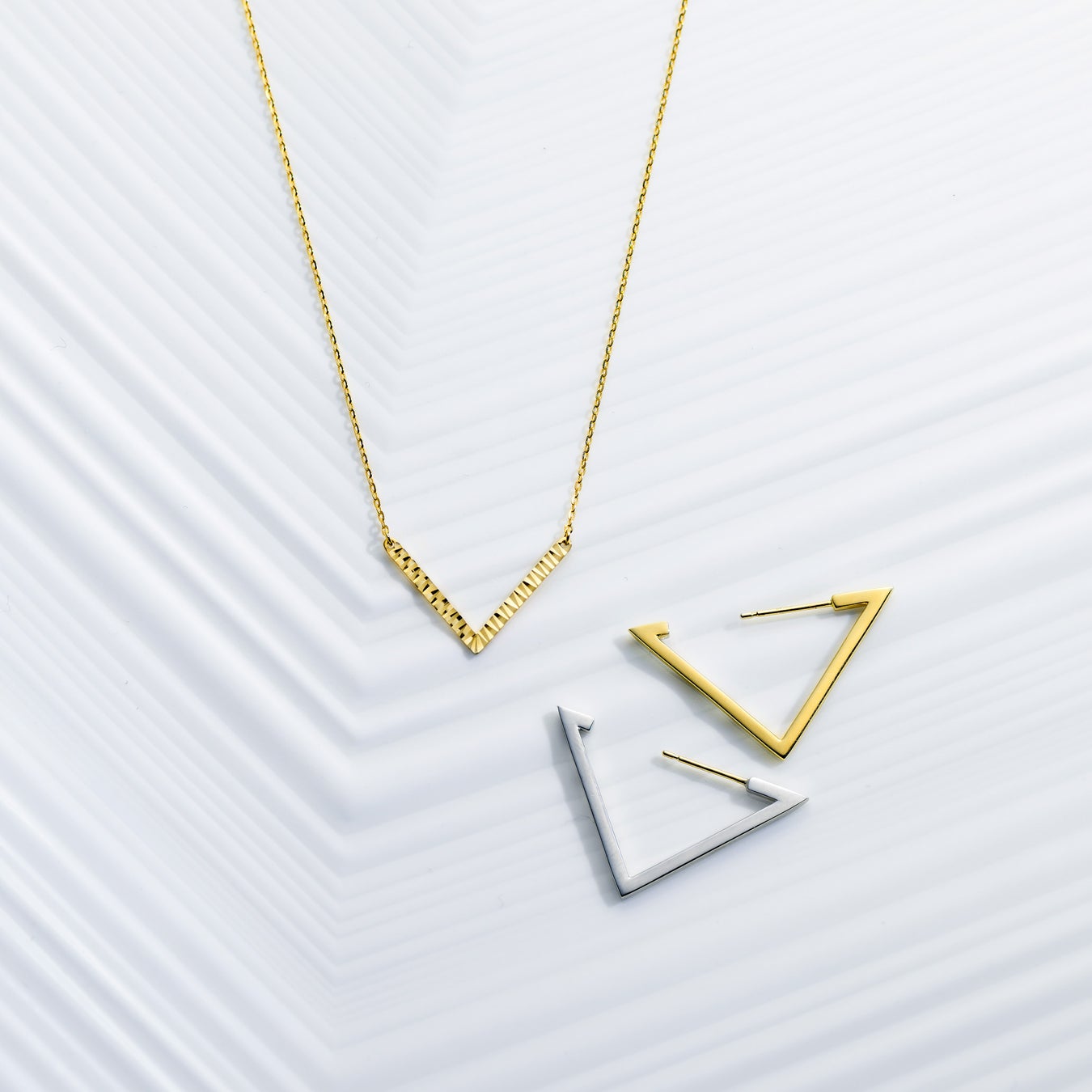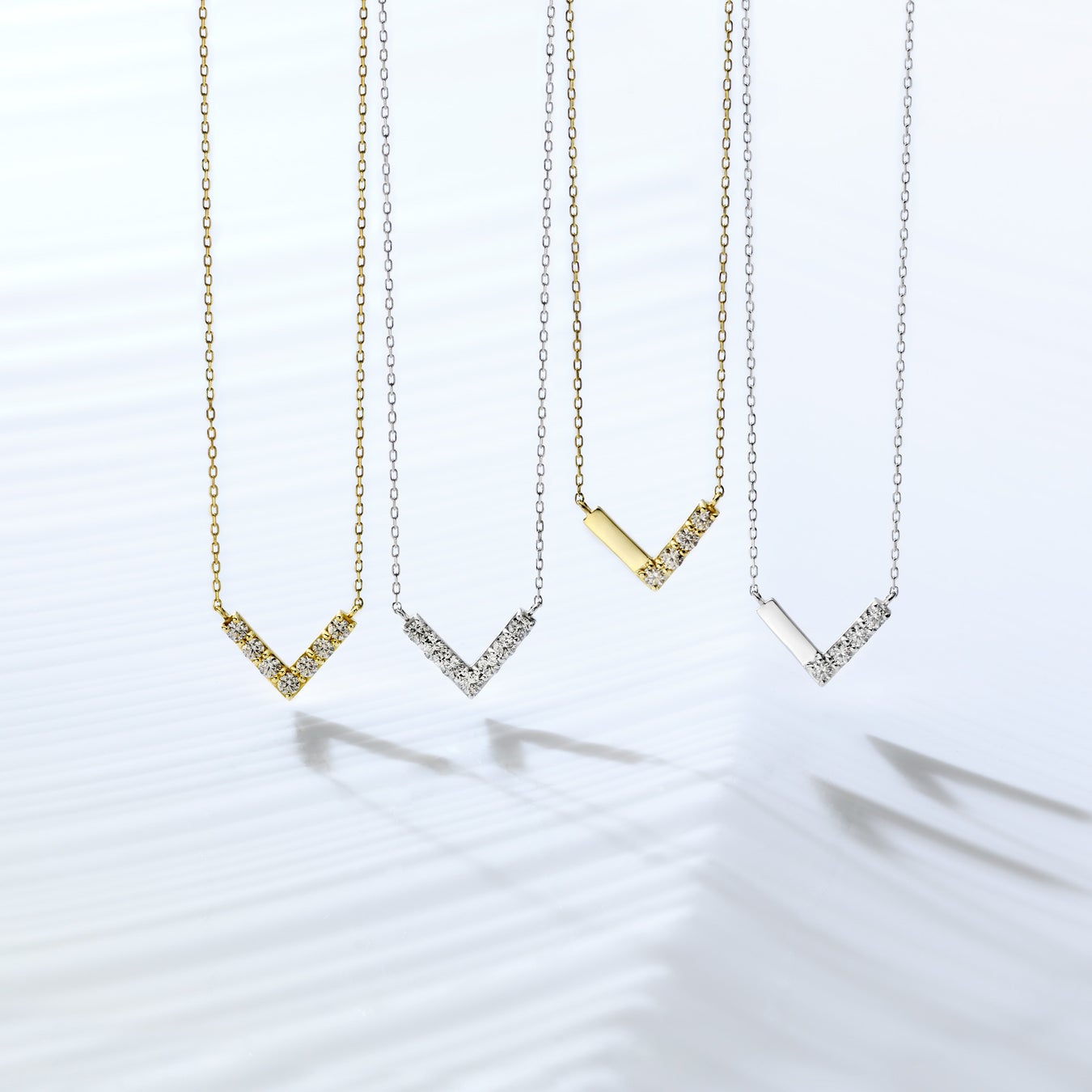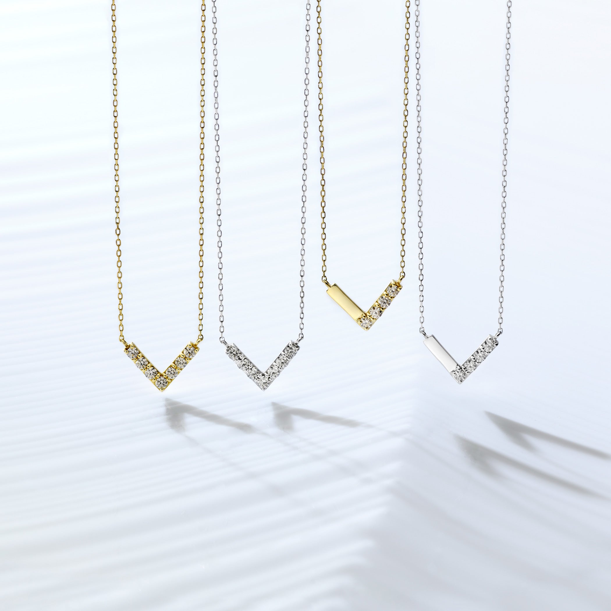 ミニマルながら印象的なVラインは、装いを選ばず調和するデザインです。